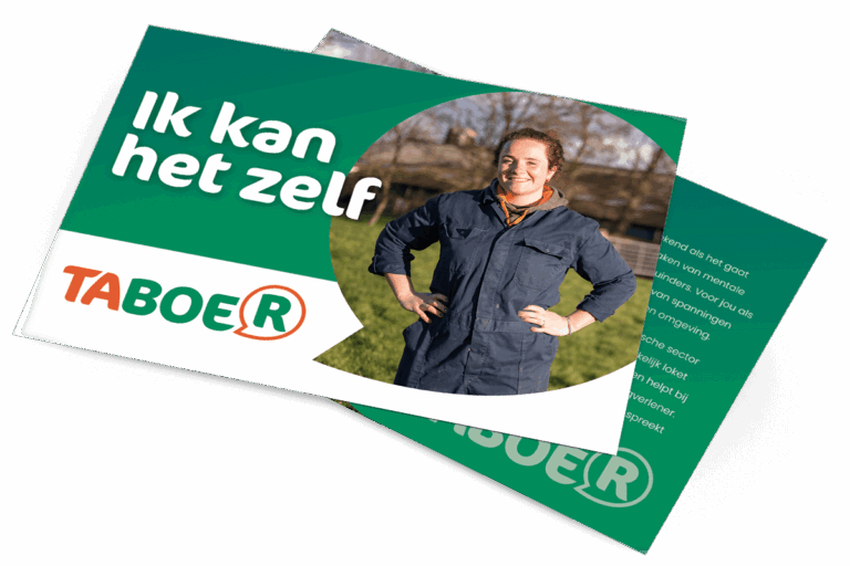 Hier vind je tools en communicatiemiddelen. Vraag naarnaast ook promotiemateriaal aan om het taboe op mentale zorgen te doorbreken.